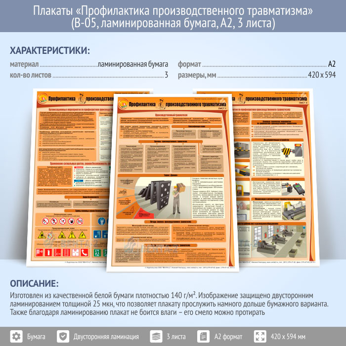 Плакаты «Профилактика производственного травматизма» (В-05, ламинированная бумага, А2, 3 листа) в Черкесске купить