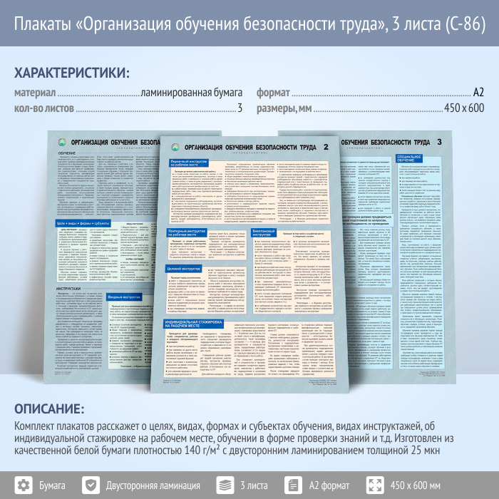 Плакаты «Организация обучения безопасности труда» (С-86, ламинированная бумага, А2, 3 листа) в Черкесске купить