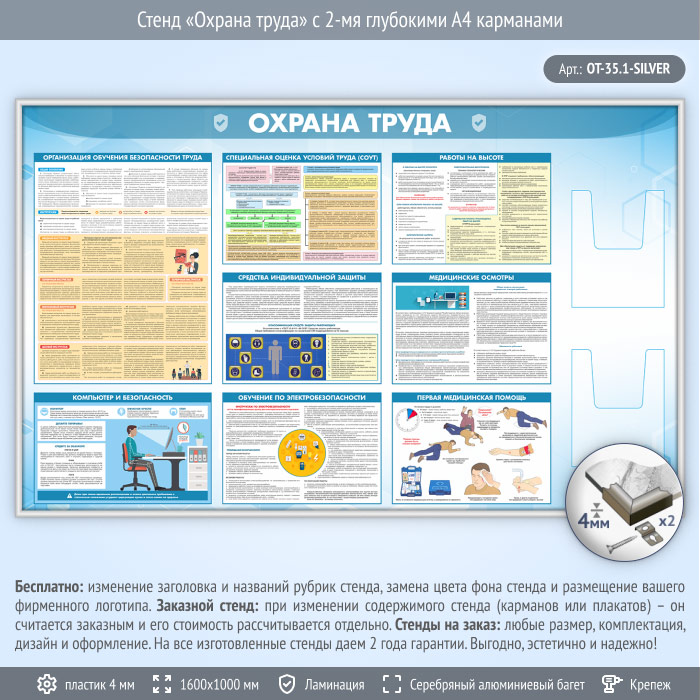 Стенд «Охрана труда» с 2-мя глубокими А4 карманами (OT-35.1-SILVER) в Черкесске купить