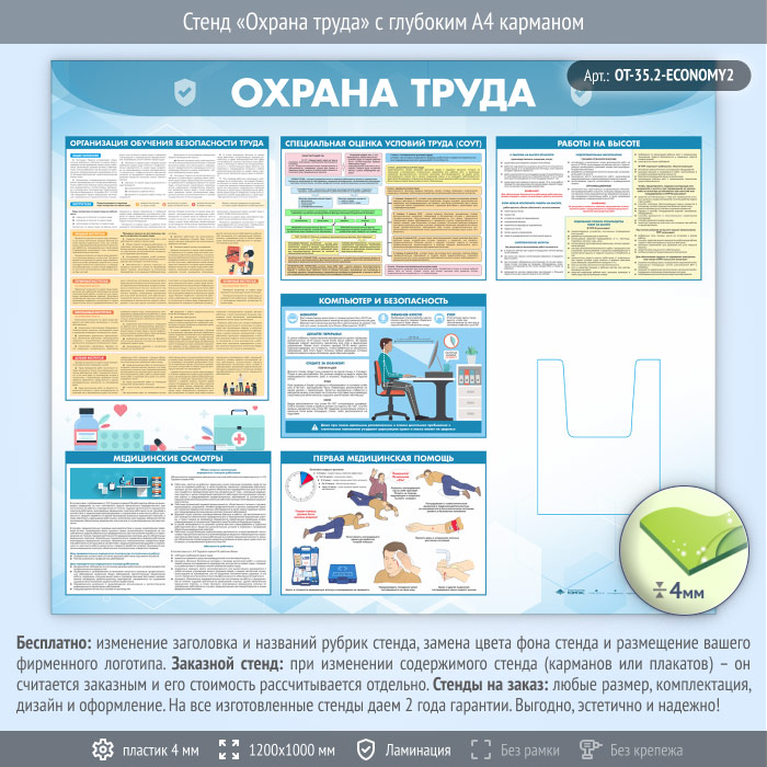 Стенд «Охрана труда» с глубоким А4 карманом (OT-35.2-ECONOMY2) в Черкесске купить