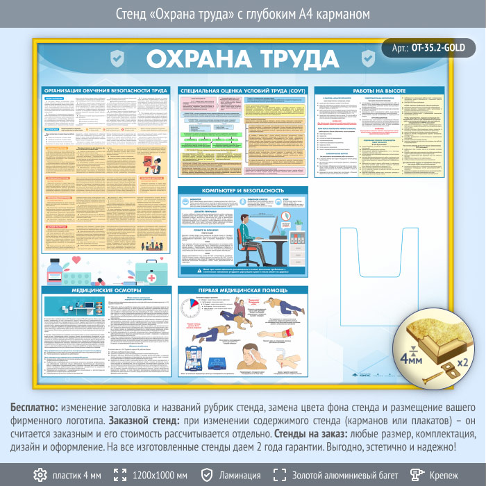 Стенд «Охрана труда» с глубоким А4 карманом (OT-35.2-GOLD) в Черкесске купить