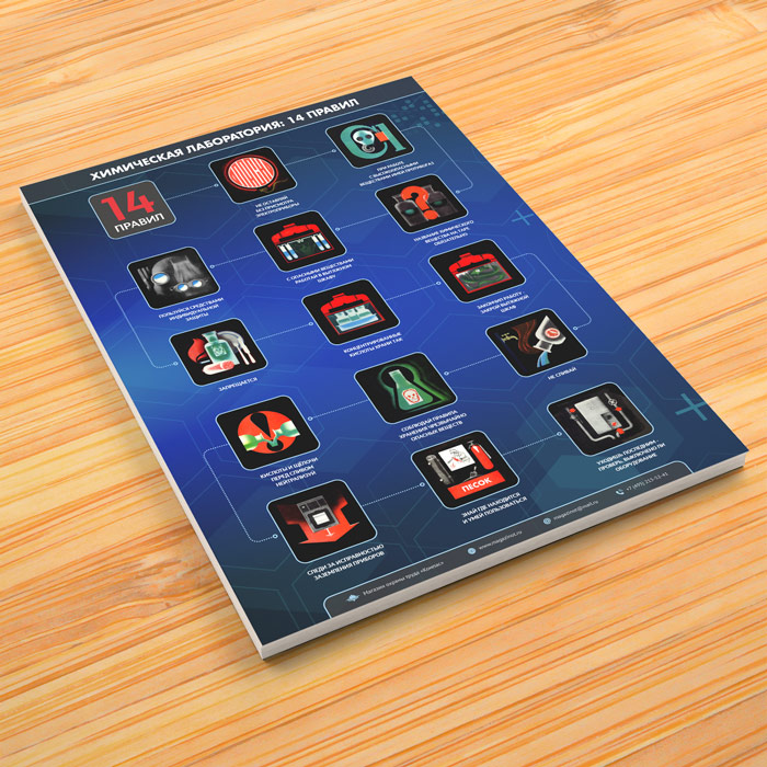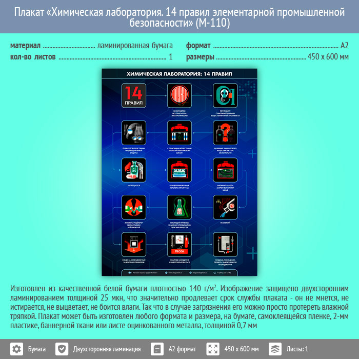 Плакат «Химическая лаборатория. 14 правил элементарной промышленной безопасности» (М-110, ламинированная бумага, А2, 1 лист) в Черкесске купить