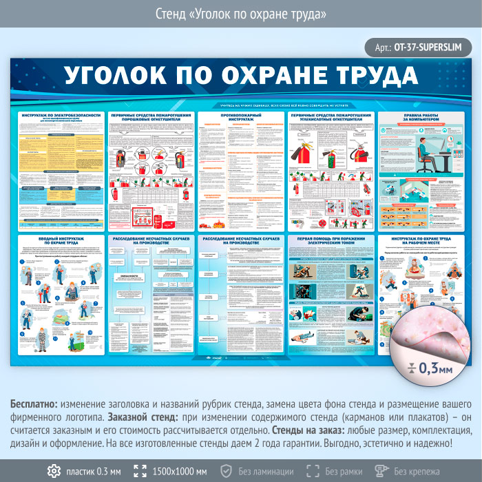 Стенд «Уголок по охране труда» (OT-37-SUPERSLIM) в Черкесске купить