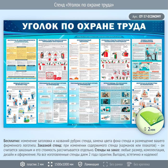 Стенд «Уголок по охране труда» (OT-37-ECONOMY) в Черкесске купить