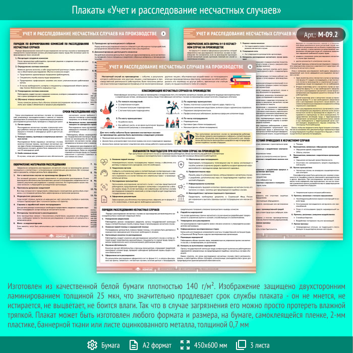 Плакаты «Учет и расследование несчастных случаев» (М-09.2, ламинированная бумага, А2, 3 листа) в Черкесске купить