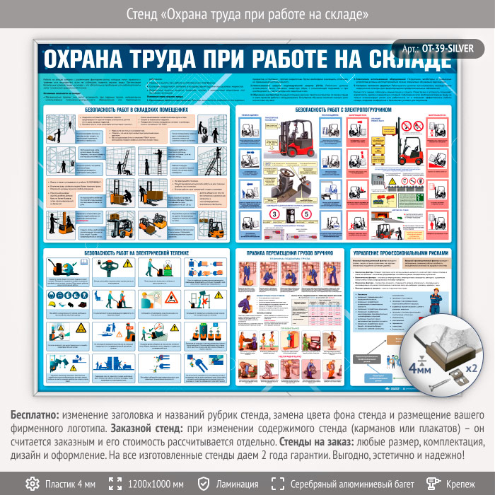 Стенд «Охрана труда при работе на складе» (OT-39-SILVER) в Черкесске купить