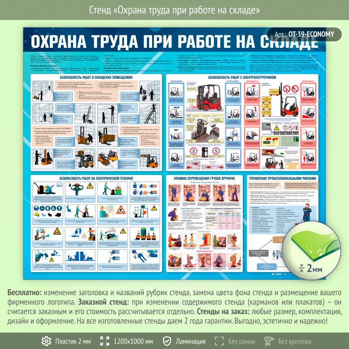 Стенд «Охрана труда при работе на складе» (OT-39-ECONOMY) в Черкесске купить