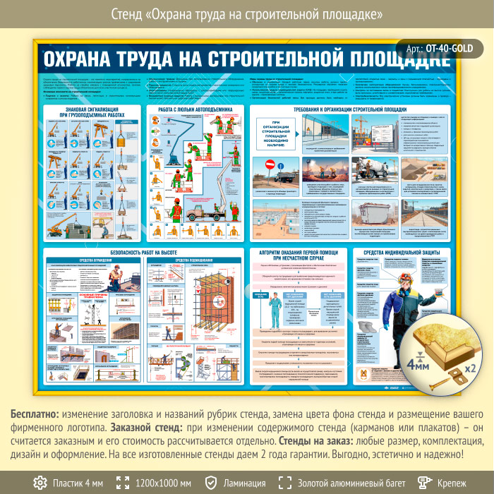Стенд «Охрана труда на строительной площадке» (OT-40-GOLD) в Черкесске купить