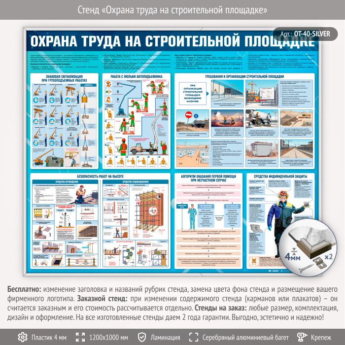 Стенд «Охрана труда на строительной площадке» (OT-40-SILVER) в Черкесске купить