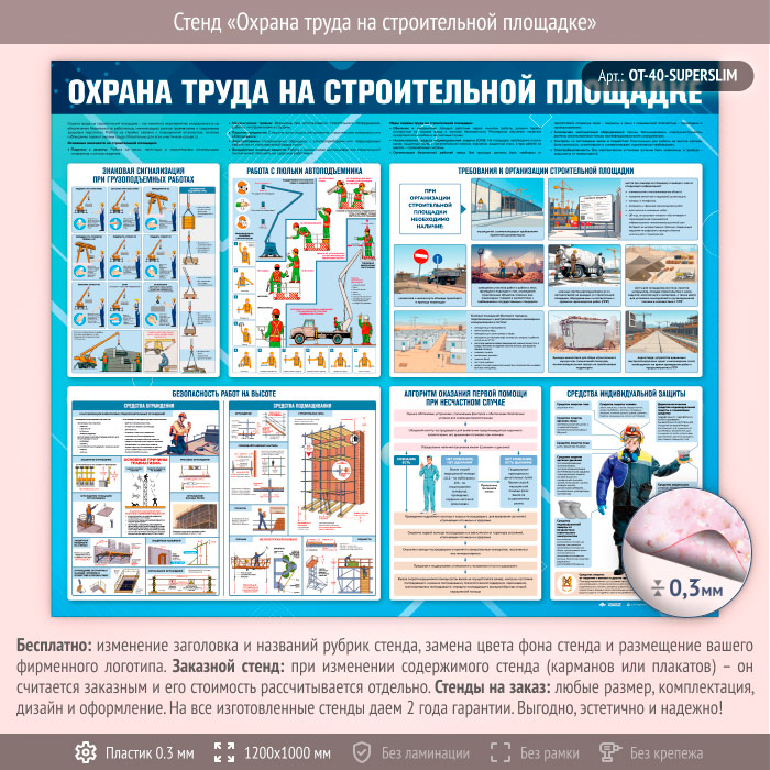 Стенд «Охрана труда на строительной площадке» (OT-40-SUPERSLIM) в Черкесске купить