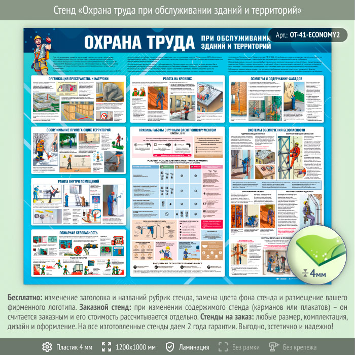 Стенд «Охрана труда при обслуживании зданий и территорий» (OT-41-ECONOMY2) в Черкесске купить