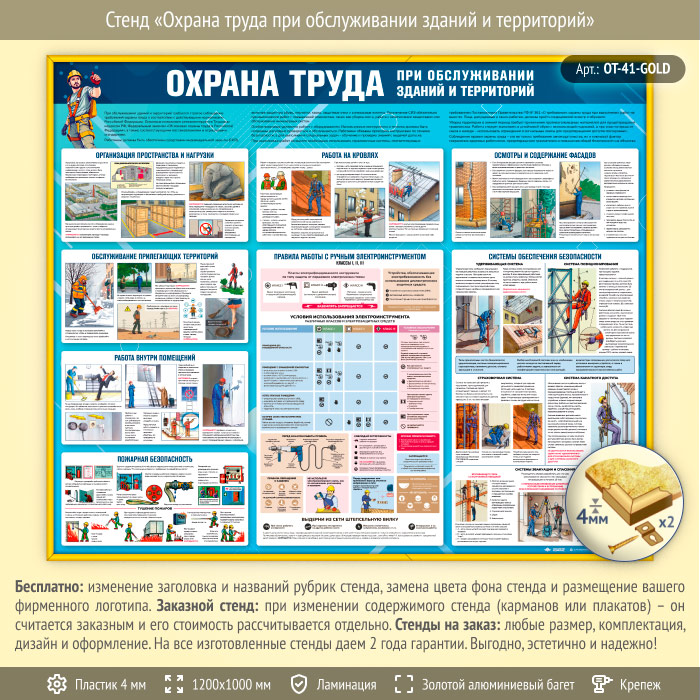 Стенд «Охрана труда при обслуживании зданий и территорий» (OT-41-GOLD) в Черкесске купить