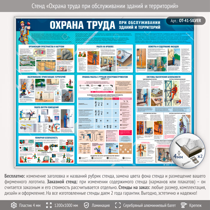 Стенд «Охрана труда при обслуживании зданий и территорий» (OT-41-SILVER) в Черкесске купить