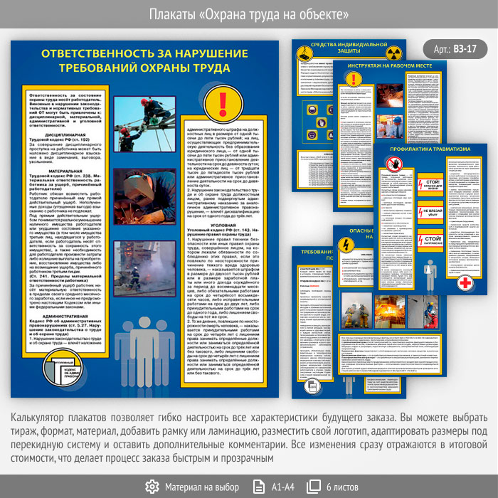 Плакаты «Охрана труда на объекте» (ВЗ-17, 6 листов) в Черкесске купить