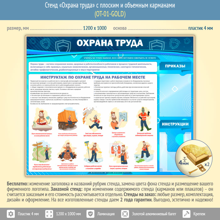 Стенд «Охрана труда» с плоским и объемным карманами (OT-01-GOLD) в Черкесске купить