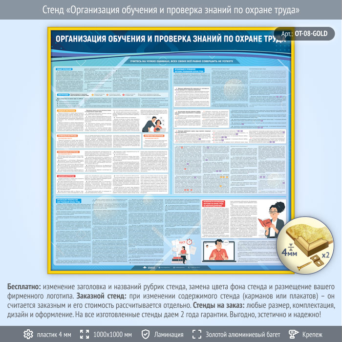 Стенд «Организация обучения и проверка знаний по охране труда» (OT-08-GOLD) в Черкесске купить