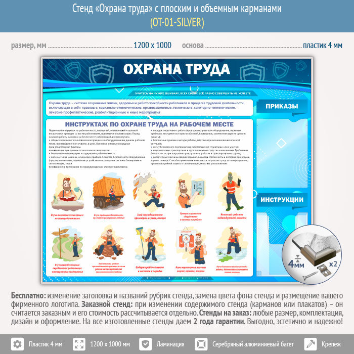 Стенд «Охрана труда» с плоским и объемным карманами (OT-01-SILVER) в Черкесске купить