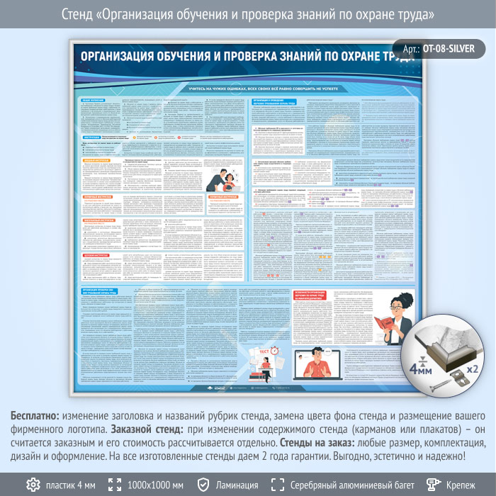 Стенд «Организация обучения и проверка знаний по охране труда» (OT-08-SILVER) в Черкесске купить