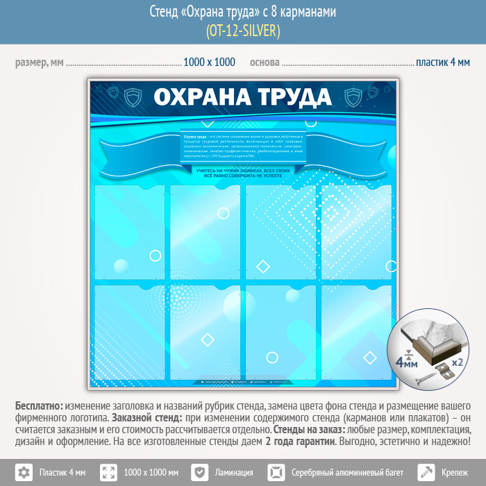 Стенд «Охрана труда» с 8 карманами (OT-12-SILVER) в Черкесске купить