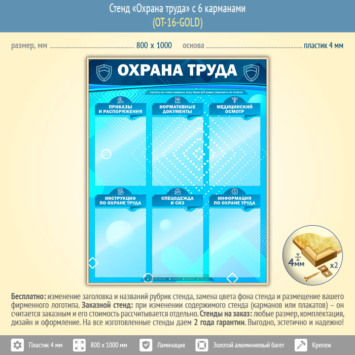 Стенд «Охрана труда» с 6 карманами (OT-16-GOLD) в Черкесске купить