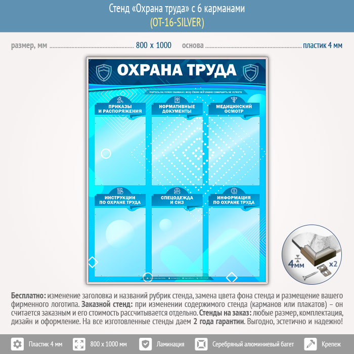 Стенд «Охрана труда» с 6 карманами (OT-16-SILVER) в Черкесске купить