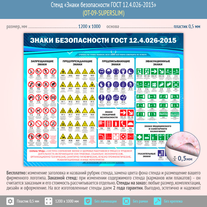 Стенд «Знаки безопасности ГОСТ 12.4.026-2015» (OT-09-SUPERSLIM) в Черкесске купить