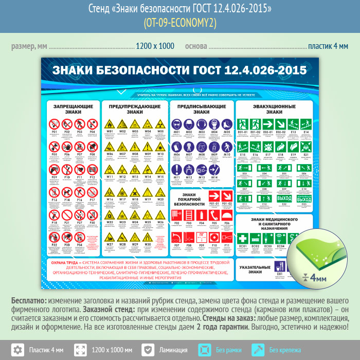 Стенд «Знаки безопасности ГОСТ 12.4.026-2015» (OT-09-ECONOMY2) в Черкесске купить