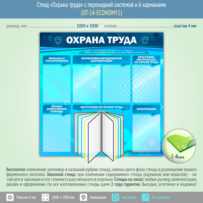 Стенд «Охрана труда» с перекидной системой и 6 карманами (OT-14-ECONOMY2) в Черкесске купить