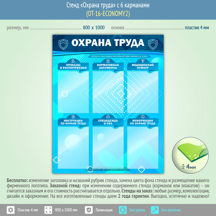 Стенд «Охрана труда» с 6 карманами (OT-16-ECONOMY2) в Черкесске купить