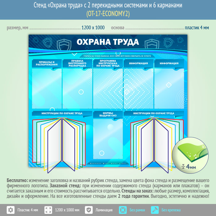Стенд «Охрана труда» с 2 перекидными системами и 6 карманами (OT-17-ECONOMY2) в Черкесске купить