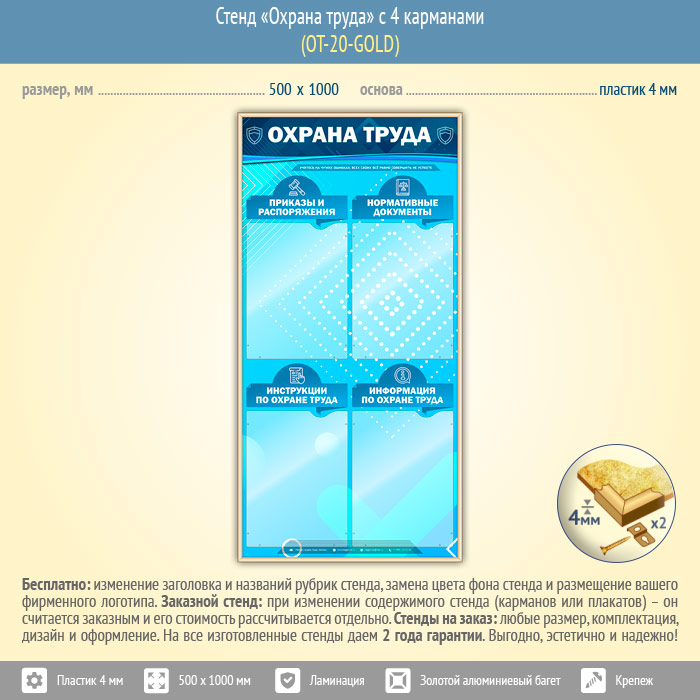 Стенд «Охрана труда» с 4 карманами (OT-20-GOLD) в Черкесске купить