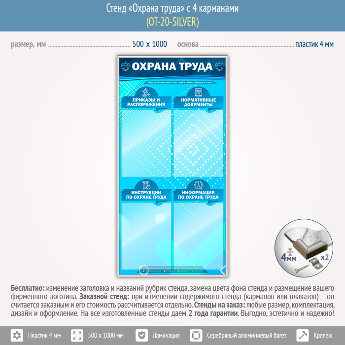 Стенд «Охрана труда» с 4 карманами (OT-20-SILVER) в Черкесске купить