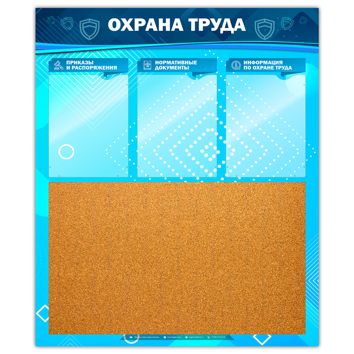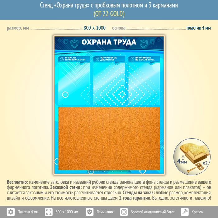 Стенд «Охрана труда» с пробковым полотном и 3 карманами (OT-22-GOLD) в Черкесске купить