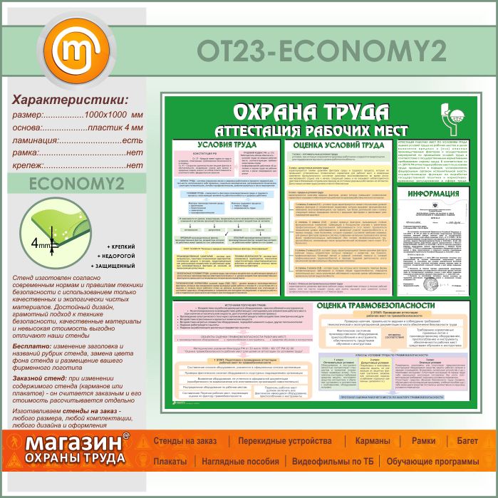 Стенд «Охрана труда. Аттестация рабочих мест» с карманом (OT-23-ECONOMY2) в Черкесске купить