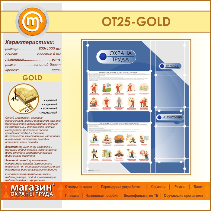 Стенд «Охрана труда» с 2 плоскими карманами (OT-25-GOLD) в Черкесске купить