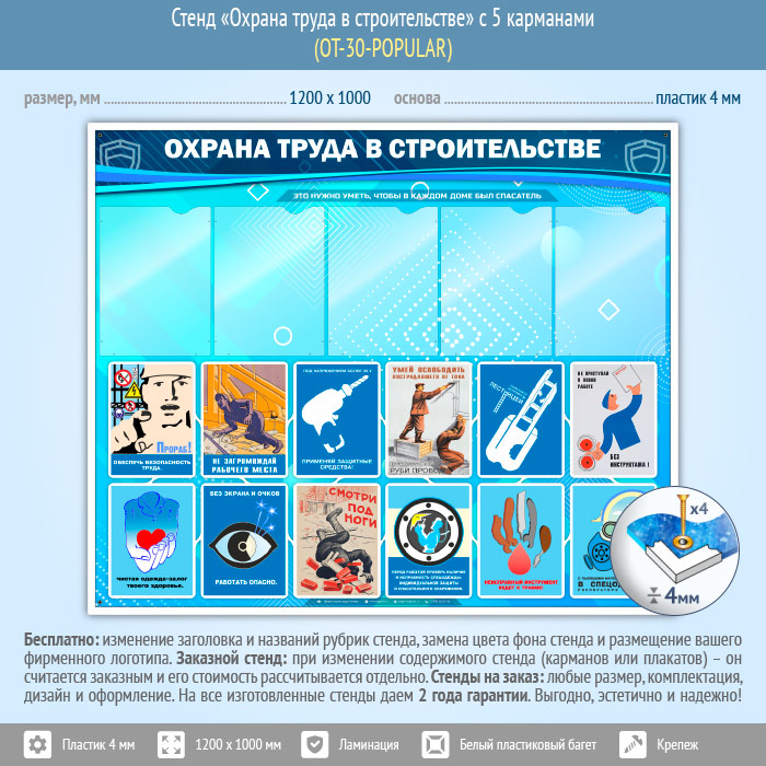 Стенд «Охрана труда в строительстве» с 5 карманами (OT-30-POPULAR) в Черкесске купить