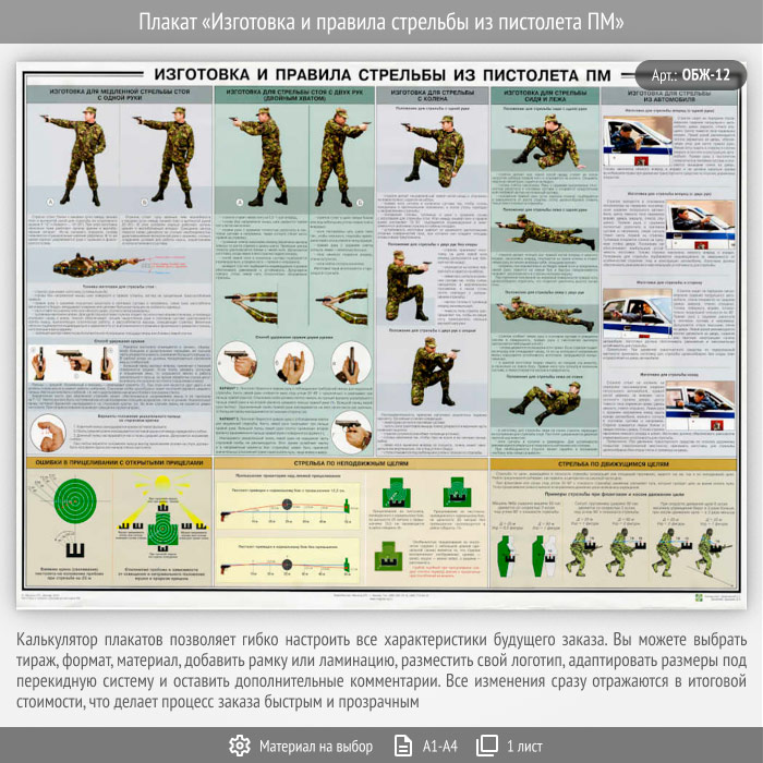 Плакат «Изготовка и правила стрельбы из пистолета ПМ» (ОБЖ-12, 1 лист) в Черкесске купить