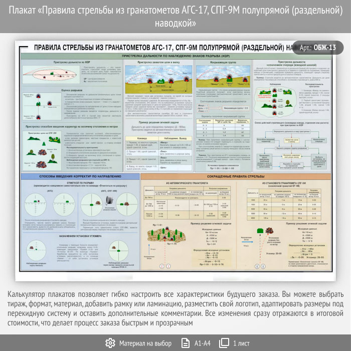 Плакат «Правила стрельбы из гранатометов АГС-17, СПГ-9М полупрямой (раздельной) наводкой» (ОБЖ-13, 1 лист) в Черкесске купить
