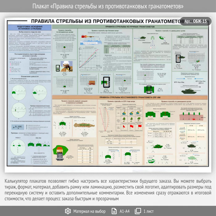 Плакат «Правила стрельбы из противотанковых гранатометов» (ОБЖ-15, 1 лист) в Черкесске купить