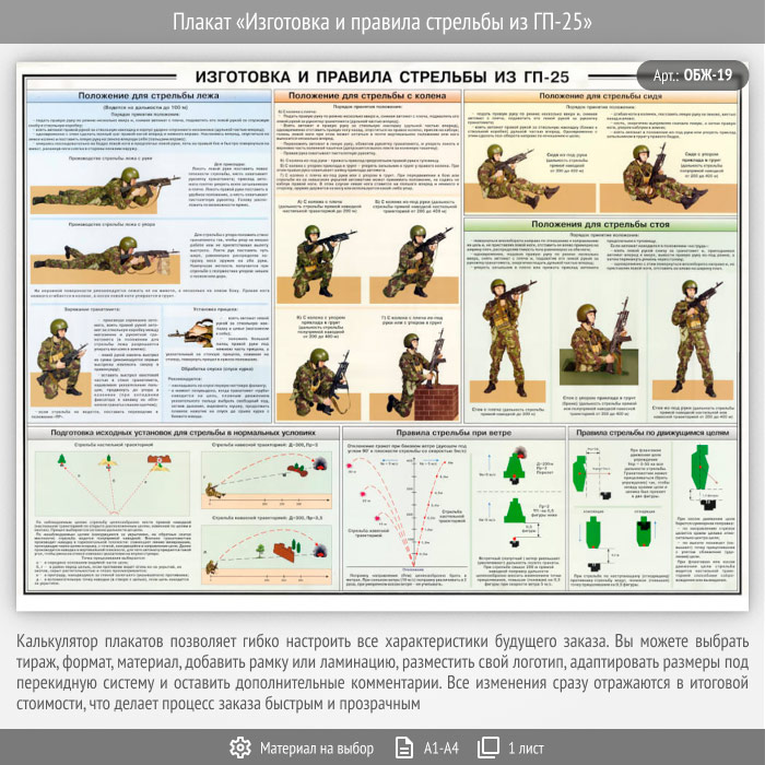 Плакат «Изготовка и правила стрельбы из ГП-25» (ОБЖ-19, 1 лист) в Черкесске купить