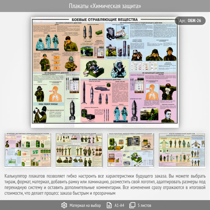 Плакаты «Химическая защита» (ОБЖ-26, 5 листа) в Черкесске купить