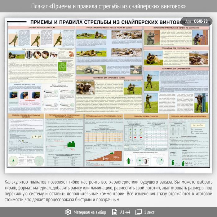 Плакат «Приемы и правила стрельбы из снайперских винтовок» (ОБЖ-28, 1 лист) в Черкесске купить