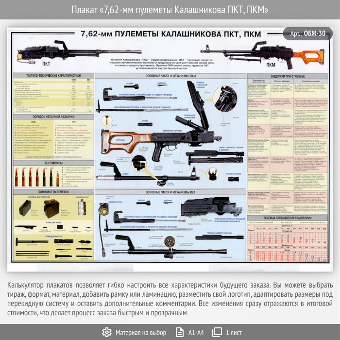 Плакат «7,62-мм пулеметы Калашникова ПКТ, ПКМ» (ОБЖ-30, 1 лист) в Черкесске купить