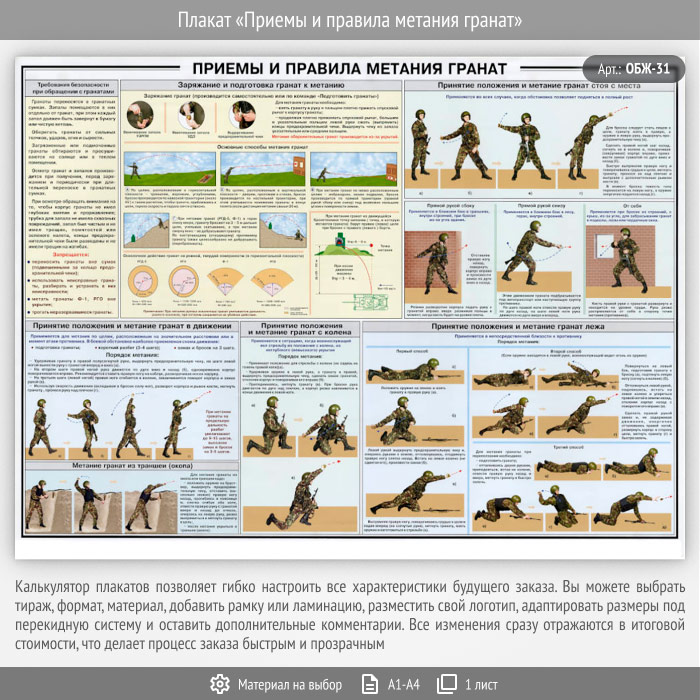 Плакат «Приемы и правила метания гранат» (ОБЖ-31, 1 лист) в Черкесске купить