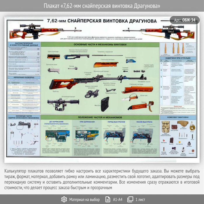 Плакат «7,62-мм снайперская винтовка Драгунова» (ОБЖ-34, 1 лист) в Черкесске купить