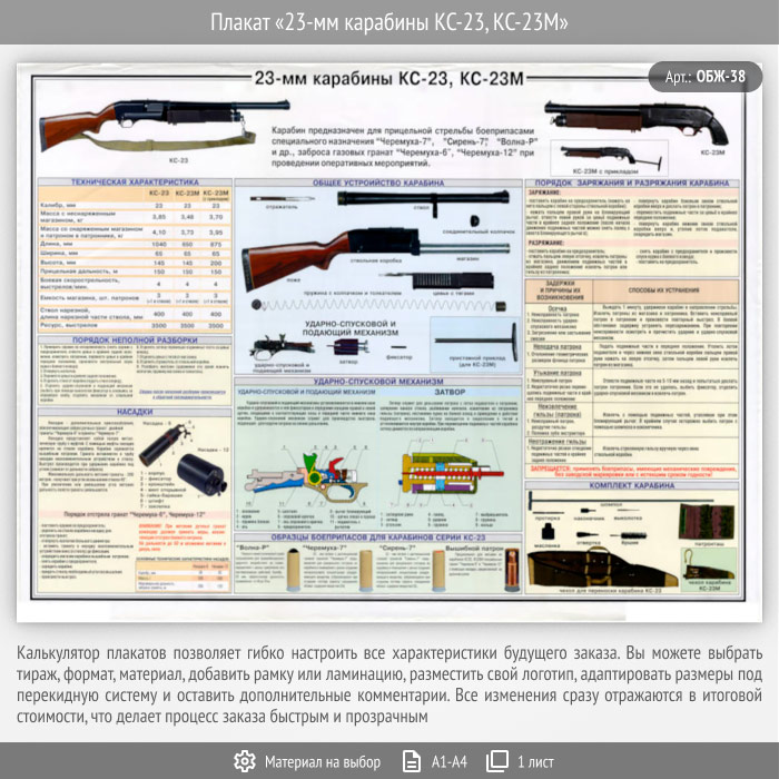 Плакат «23-мм карабины КС-23, КС-23М» (ОБЖ-38, 1 лист) в Черкесске купить