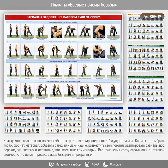 Плакаты «Боевые приемы борьбы» (ОБЖ-39, 8 листа) в Черкесске купить