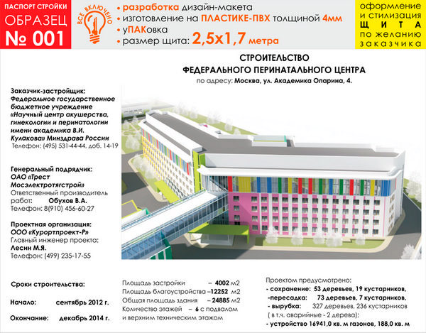 Паспорт стройки, образец № 1 (пластик 4 мм, 2500х1700 cм) в Черкесске купить
