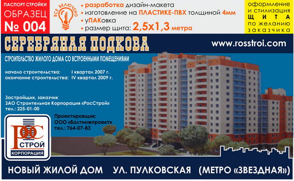 Паспорт стройки, образец № 4 (пластик 4 мм, 2500х1300 cм) в Черкесске купить