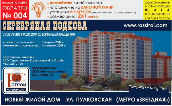Паспорт стройки, образец № 4 (баннерная ткань, 2000х1000 cм) в Черкесске купить